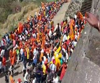 शिवजयंतीनिमित्त शिवनेरीवर शिवप्रेमींची मोठी गर्दी, हत्ती दरवाजातून बाहेर पडण्यासाठी पाऊणतास, जीव धोक्यात घालत गडावरुन उतरण्याचा प्रयत्न