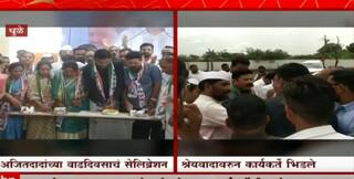 धुळ्यात आज राष्ट्रवादीचे नेते अजित पवार यांच्या वाढदिवसानिमित्त कार्यकर्त्यांनी एकत्र येत जोरदार सेलिब्रेशन केलं. आधी केक कापला, पेढे वाटले, फटाकेही फोडले. मात्र, अवघ्या काही वेळातच हे कार्यकर्ते आपआपसात भिडल्याचं पाहायला मिळालं. राष्ट्रवादीचे माजी आमदार अनिल गोटेंचे समर्थक आणि शहर जिल्हाध्यक्ष रणजीत राजे भोसलेंचे समर्थक यांच्यात श्रेयवादावरून हा वाद झाला.अनिल गोटे यांच्या पुढाकाराने राष्ट्रवादी भवनाच्या इमारतीचं श्रमदानातून नूतनीकरण करण्यात येतंय
