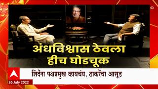 Uddhav Thackeray Interview : "परिवारातले समजून मी यांच्यावर अंधविश्वास ठेवला हीच माझी चूक झाली. समजा मी त्यांना मुख्यमंत्री केलं असतं तर यांनी काय वेगळं केलं असतं? त्यांची भूकच भागत नाही, आता शिवसेनाप्रमुख व्हायचंय. स्वतःची तुलना शिवसेनाप्रमुखांशी करत आहेत, ती राक्षसी महत्वाकांक्षा आहे. याला हावरटपणा म्हणतात," असा शब्दात उद्धव ठाकरे (Uddhav Thackeray) यांनी मुख्यमंत्री एकनाथ शिंदे यांच्यावर हल्लाबोल केला.