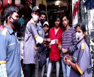 मुलुंडमध्ये 'क्लिनअप मार्शल' अनोखा उपक्रम राबवताना दिसत आहे. मास्क न वापरणाऱ्यांना गुलाबाचं फुल आणि मास्कचं वाटप करण्यात येत आहे.