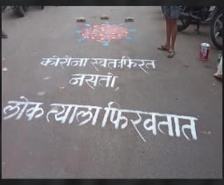 Coronavirus | मुंबई पालिका कर्मचाऱ्यांकडून लोकांचं प्रबोधन; रस्त्यावर पेंटिंग रेखाटून जनजागृती