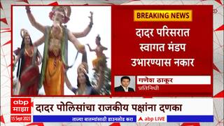 गणेशोत्सवादरम्यान कायदा सुव्यवस्थेच्या कारणावरून मुंबईतील दादरमध्ये पोलिसांचा मोठा निर्णय. शिवसेना, उद्धव ठाकरे गट आणि मनसे पक्षांना स्वागत मंडप उभारण्याची परवानगी नाकारली. गेल्या वर्षी प्रभादेवी परिसरात याच कारणावरून राडा आणि गोळीबार झाला होता.
