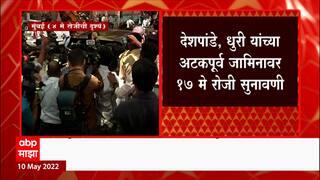 मनसे नेते संदीप देशपांडे आणि संतोष धुरी यांच्या अटकपूर्व जामिनावरील सुनावणी पुढे ढकललीय. न्यायाधीश उपस्थित नसल्यामुळे ही सुनावणी पुढे ढकलण्यात आलीय. पुढील सुनावणी १७ मे रोजी होणार आहे. महिला पोलीस कर्मचाऱ्याला धक्काबुक्की केल्याच्या आरोपाखाली मुंबईतील दादरच्या शिवाजी पार्क पोलीस ठाण्यात त्यांच्यावर गुन्हा दाखल करण्यात आलाय. राज ठाकरेंनी मशिदीवरील भोंगे उतरवण्यासाठी ४ मेचा अल्टिमेटम दिला होता. प्रतिबंधात्मक कारवाई दरम्यान पोलिसांनी संदीप देशपांडे आणि संतोष धुरी यांना ताब्यात घेण्याचा प्रयत्न केला. मात्र पोलिसांच्या हातावर तुरी देऊन दोन्ही नेत्यांनी कारमधून पळ काढला. यावेळी एक महिला पोलीस कर्मचारी जखमी झाली.