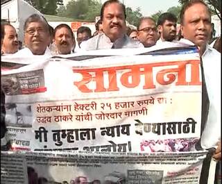 हिवाळी अधिवेशनाच्या तिसऱ्या दिवशीही शेतकऱ्यांच्या प्रश्नावर भाजप आक्रमक झालेला पाहायला मिळत आहे. भाजप आमदारांनी शेतकऱ्यांना हेक्टरी 25 हजारांची मदत मिळावी म्हणून जोरदार घोषणाबाजी केली. विधीमंडळाच्या पायऱ्यांवर भाजप सदस्यांनी आंदोलन सुरु केलं. यावेळी सत्ताधाऱ्यांच्या विरोधात जोरदार घोषणाबाजी करण्यात आली.