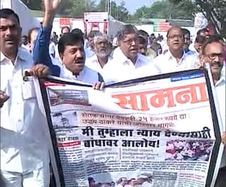 आज हिवाळी अधिवेशनाच्या चौथ्या दिवशी सभागृह सुरु होण्यापूर्वी भाजपच्या आमदरांनी शेतकरी कर्जमाफी मुद्यावरुन घोषणाबाजी केली. 25 हजार रुपये हेक्टरी मदत झालीच पाहिजे, अशा घोषणा भाजप आमदारांनी दिल्या. 'सामना' वृत्तपत्राचे पोस्टर हातात घेऊन भाजप आमदारांनी आंदोलन केलं.
