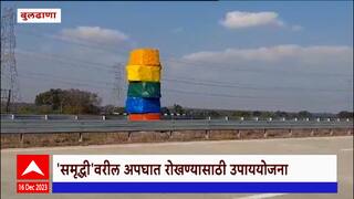 समृद्धी महामार्गावरील मोकळ्या जागेत सुशोभीकरण, विविध रंगाची फुले आणि कृत्रिम दगडांच्या उतरंडी महामार्गावर लावण्यात येत असून, अपघात रोखण्यासाठी उपाययोजना.