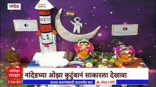 नांदेडच्या ओझा परिवारानं साकारला आदित्य एल १चा देखावा, भारताच्या वैज्ञानीकांना मानवंदना देण्यासाठी देखावा साकारल्याचं ओझा कुटुंबियांची माहिती.