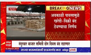 नंदुरबार बाजार समिती दोन दिवस राहणार बंद.... बाजार समितीत कडधान्याची आणि गव्हाची मोठ्या प्रमाणात आवक ... शेतीमालाची वाढती आवक माल ठेवण्यासाठी शेड मध्ये जागा नसल्याने, जिल्ह्यात दोन दिवस अवकाळी पावसाचा जोर कायम राहण्याचा अंदाज यामुळे खरेदी विक्री बंद ठेवण्याचा निर्णय... अवकाळी पावसामुळे विक्री साठी आलेल्या मालाचे नुकसान होण्याची शक्यता लक्षात घेत निर्णय... काल झालेल्या अवकाळी पावसामुळे बाजार समितीत आणलेला शेतकऱ्यांचा शेतीमाल भिजल्याने नुकसान...