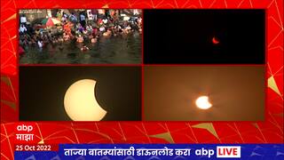 तब्बल २७ वर्षांनंतर भारतात दिवाळीत सूर्यग्रहणाचा योग जुळून आलाय.. या वर्षातील हे शेवटचे ग्रहण असेल..देशात सूर्यग्रहणाला सुरुवात झालीए,... आणि हे ग्रहण पाहण्याचा अनुभव सध्य़ा देशाच्य़ा कानाकोपऱ्यातून घेतला जातोय.... एबीपी माझाच्या कॅमेऱ्यातून तुम्ही घरबसल्या जगभरतील ग्रहणाची दृश्य पाहू शकताय... दुपारी ४.४९ मिनिटांनी खंडग्रास सूर्यग्रहणाला सुरुवात झाली आणि आता सूर्यग्रहण संपायला काही मिनिटं शिल्लक आहेत... ६.०९ मिनिटांनी सूर्यग्रहण संपेल... खगोलप्रेमी आणि छायाचित्रकारांनी सूर्यग्रहणाची दृश्य कॅमेऱ्यात कैद केली आहेत... देशाच्या वेगवेगळ्या ठिकाणांहून वेगवेगळ्या वेळी हे सूर्यग्रहण दिसलं...
