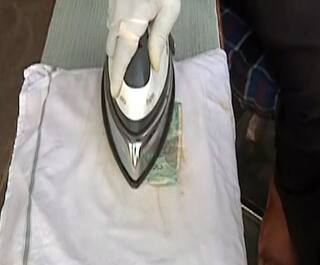 नोटांपासून कोरोना टाळण्यासाठी अनोखी शक्कल; चिमट्यानं नोटांना स्पर्श, मग थेट नोटांवर इस्त्री