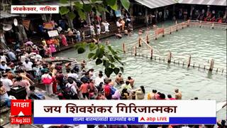 आज श्रावणी सोमवारनिमित्त सर्वत्र भाविकांनी गर्दी केलीय. त्र्यंबकेश्वरला एरवीही गर्दी असते. आता श्रावणी सोमवारच्या निमित्ताने भाविकांच्या संख्येत मोठी वाढ झालीय. . श्रावणी सोमवारनिमित ब्रह्मगिरी प्रदक्षिणा देखील महत्त्वाची मानली जाते. आणि याच पार्श्वभूमीवर ब्रह्मगिरी प्रदक्षिणेसाठी कुशावर्त तीर्थात स्नान करण्यासाठी भाविकांनी मोठी गर्दी केल्याचं पहायला मिळालं.