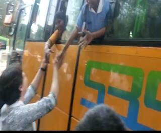 Priyanka Gandhi Meet Student | आंदोलनादरम्यान प्रियांका गांधींना स्कूलबसमधील मुलींची साद