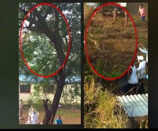 VIDEO | झाडावरुन उडी मारत बिबट्याची गावकऱ्यांना हुलकावणी | ABP Majha