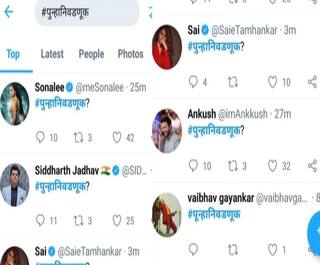 निवडणुकीनंतर कोणताही पक्ष सत्ता स्थापन करु न शकल्याने महाराष्ट्रात राष्ट्रपती राजवट लागू झाली. शिवसेनेने एनडीएतून बाहेर पडत काँग्रेस आणि राष्ट्रवादी काँग्रेससोबत सत्ता स्थापनेची चर्चा सुरु केली. एकीकडे महाशिवआघाडी सत्ता स्थापन करणार असल्याची चर्चा रंगली आहे तर दुसरीकडे आपलंच सरकार येईल, असा दावा भाजपने केला आहे. मात्र या सर्व घडामोडींमध्ये मराठी चित्रपट कलाकारांच्या एकसारख्या ट्वीटवरुन वाद रंगला आहे. बऱ्याच मराठी कलाकारांनी #पुन्हानिवडणूक हा हॅशटॅग वापरत ट्वीट केले आहेत. दरम्यान, मराठी कलाकारांनी एकाच वेळी #पुन्हानिवडणूक हा हॅशटॅग वापरण्यामागची दुसरी बाजू समोर आली आहे. हा एक प्रमोशनाचा भाग आहे. धुरळा नावाचा सिनेमा येत आहे. त्याचाच भाग म्हणून हा हॅशटॅग करण्यात आला आहे.