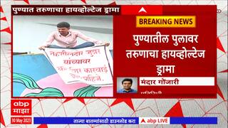 पुण्यातील शिवाजीनगर मधील सी ई ओ पी महाविद्यालयासमोरील उड्डाणपूलाच्या कठड्यावर एक तरुण चढून बसलाय. जुन्नरच्या तहसीलदारावर कारवाई व्हावी अशी मागणी असलेला फ्लेक्स त्याच्याकडे आहे. त्याला वरती बोलावण्याचे पोलीस आणि अग्निशमन दलाचे प्रयत्न सुरु आहेत. मात्र हा तरुण एकण्याच्या मनस्थितीत नाही.