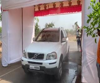 बारामतीतील 'सायबाचीवाडी'ची अनोखी शक्कल लढवण्यात आली आहे. ग्रामस्थांसह वाहनांवर सॅनिटायझरची फवारणी करण्यात आली.