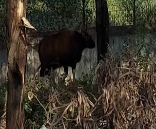 काही वेळापूर्वी कम्पाऊंड वॉलच्या शेजारी, अगदी महामार्गावरुन प्रवास करणाऱ्या वाहनांना दिसणारा गवा आजूबाजूला हालचाल वाढल्याने दाट झाडीमध्ये गेला आहे. पण सध्या जिथे हा गवा आहे ती अतिशय चिंचोळी जागा आहे. महामार्ग आणि कंपाऊंड वॉल यांच्यामध्ये असलेल्या जागेमध्येच त्याचा वावर आहे आणि त्याच्यावर याच ठिकाणी नियंत्रण मिळवणे आवश्यक आहे. वनविभागाचे त्यादृष्टीने प्रयत्न सुरु आहेत.