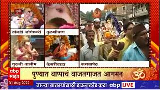 Pune Ganeshotsav 2022 : पुण्यात मानाच्या पाचही गणपतींचं ढोल ताशांच्या गजरात स्वागत