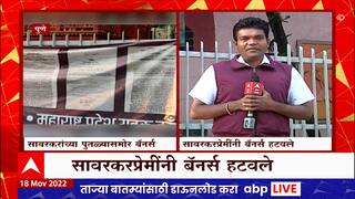 पुण्यात स्वा. सावरकरांच्या पुतळ्यासमोर युवक काँग्रेसची बॅनरबाजी. युवक काँग्रेसनं लावलेले 'माफीवीर' लिहिलेले बॅनर सावरकर प्रेमींनी हटवले