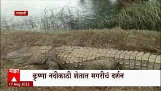 Sangli Crocodile : पुराचं पाणी ओसरलं, कृष्णा नदीकाठच्या शेतात महाकाय मगरीचं दर्शन