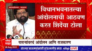 महाबळेश्वर दौऱ्यावर असणाऱ्या मुख्यमंत्र्यांनी, उद्धव ठाकरेंच्या टीकेला प्रत्युत्तर देताना विधानभवनातल्या पायऱ्यांवरच्या आंदोलनाची आठवण करून दिलीय. चार दिवस पायऱ्यांवर कोण होतं हे सर्वांनी पाहिलंय अशा शब्दात एकनाथ शिंदेंनी टोला हाणलाय...