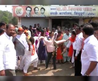 सिंधुदुर्गकरांकडून निलेश राणेंच्या पुतळ्याला जोडे, शिवसैनिकांची राणेंवर कारवाईची मागणी