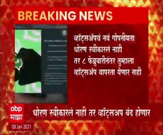 व्हॉट्सअपकडून देण्यात येणारं नवं गोपनीयता धोरण स्वीकारा. असं न केल्यास 8 फेब्रुवारीनंतर तुम्हाला व्हॉट्सअप वापरता येणार नाही. व्हॉट्सअपकडून वापरकर्त्यांना यासंदर्भातील संदेश येण्यास सुरुवात.
