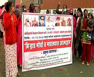 आदिवासी विकास विभागाच्या कर्मचाऱ्यांचं नाशिकमध्ये आंदोलन, पोलिसांनी आंदोलनकर्त्यांना रस्त्यातच रोखलं
