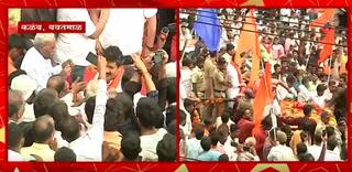 Sanjay Rathod Yawatmal : कळंबनगरीत आगमन झाल्यावर राठोडांवर जेसीबीच्या साहाय्याने पुष्पवृष्टी