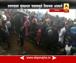 रायगडवर तुफान पावसामुळे अडकलेले शिवभक्त आता खाली उतरु लागले आहेत. सकाळी तिथीनुसार राज्याभिषेक सोहळा साजरा करण्यास शिवभक्त गडावर गेले होते. परंतु तुफान पावसामुळे खाली येणारा रस्ता बंद झाला होता...त्यामुळे शिवभक्त मोठ्या पावसात गडावर अडकून पडले होते.