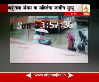 एसटीचे चाक अंगावरुन गेल्याने सातारा बसस्थानकात महिलेचा जागीच मृत्यू झाला आहे. आज दुपारी घडलेल्या या घटनेची दृश्य सीसीटीव्हीमध्ये कैद झाली असून बेजबाबदार एसटी चालकाविरोधात गुन्हा दाखल करण्यात आला आहे. साताऱ्याच्या मध्यवर्ती बसस्थानकात हा अपघात घडला आहे. सांगलीमध्ये राहणाऱ्या शकुंतला जंगम नावाची महिला बससमोरुन जात होती. मात्र त्याचवेळी बसचालकाने बस सुरु करुन महिलेच्या अंगावर घातली. साताऱा-सांगली एसटी चालकाने महिलेला बसखाली चिरडलं आहे. दरम्यान पोलीस घटनास्थळावर दाखल झाले असून चालकाविरोधात गुन्हा दाखल करण्यात आला आहे.