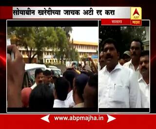 सातारा : सोयाबीन खरेदीच्या जाचक अटींविरोधात राष्ट्रवादी काँग्रेसचं आंदोलन