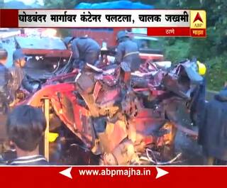 ठाणे : घोडबंदर रोडवर कंटेनर पलटला, चालक जखमी